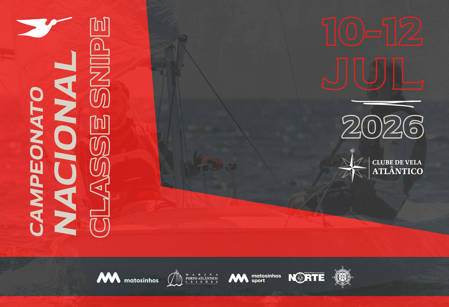 « Todos Eventos Campeonato Nacional da Classe SNIPE 2026 Julho 10 - Julho 12 Anúncio de Regata Instruções de Regata Manual de Acolhimento Racing Rules of Sailing Inscrições Leça da Palmeira, Matosinhos Clube Vela Atlântico, 4450-718 - Leça da Palmeira Matosinhos, Porto 4450-718 Portugal + Mapa do Google Categorias: Snipe Organizador Clube de Vela Atlântico… Continue a ler Campeonato Nacional da Classe SNIPE 2026